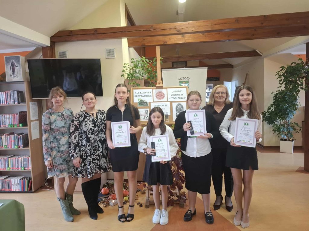 5 listopada 2025 r. w Gminnej Bibliotece Publicznej w Rozogach odbyły się eliminacje gminne konkursu recytatorskiego „Kurpie Zielone w literaturze”. Wydarzenie zgromadziło młodych miłośników poezji z klas V–VIII, którzy prezentowali wybrane utwory inspirowane kulturą kurpiowską.
