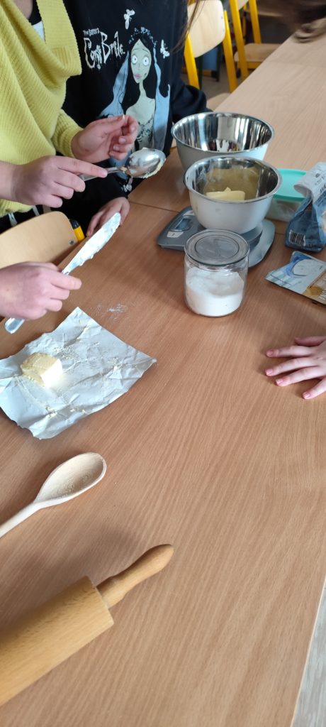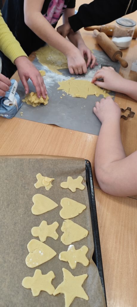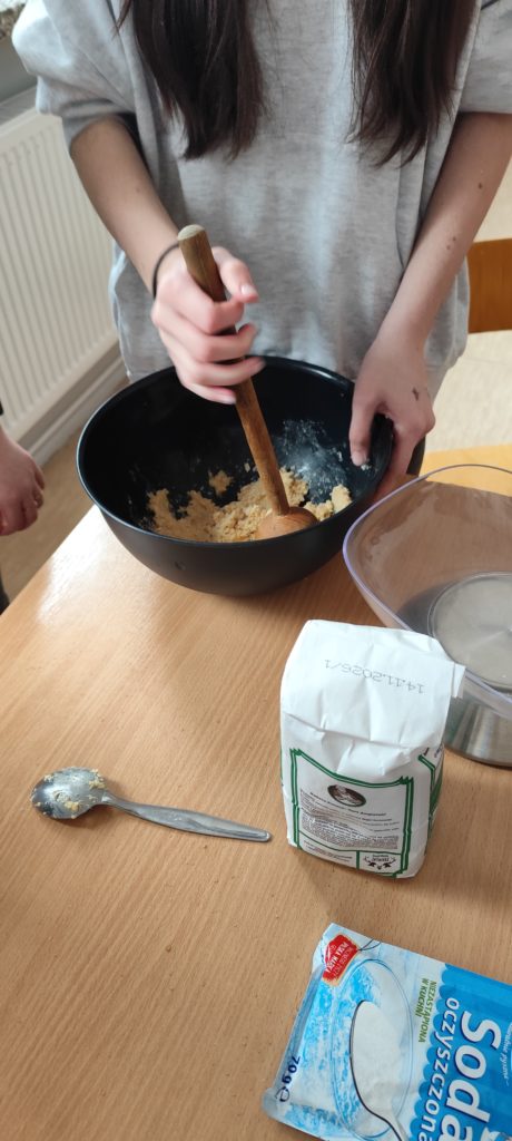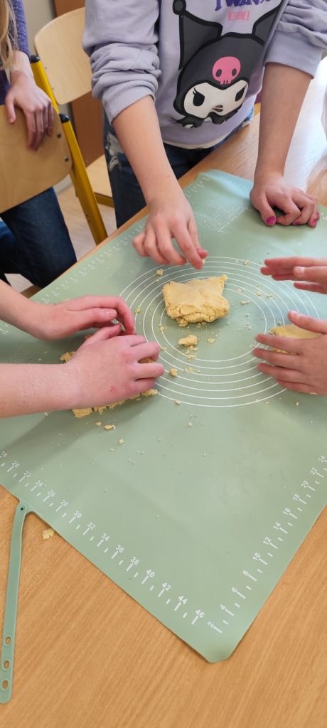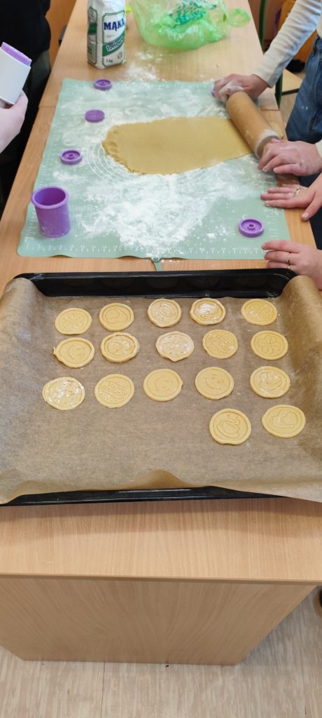 Na zajęciach w ramach programu Laboratoria Przyszłości uczniowie mieli okazję rozwijać swoje umiejętności kulinarne, przygotowując kruche ciasteczka. Dzieci z dużym zaangażowaniem odmierzały składniki, wyrabiały ciasto oraz wykrawały różnorodne kształty, a następnie piekły je, korzystając ze sprzętu zakupionego w ramach programu. Zajęcia były nie tylko okazją do nauki praktycznych umiejętności, ale także do rozwijania współpracy, kreatywności i radości ze wspólnego działania. Na zakończenie wszyscy mogli spróbować własnoręcznie przygotowanych wypieków, co sprawiło uczestnikom wiele satysfakcji.