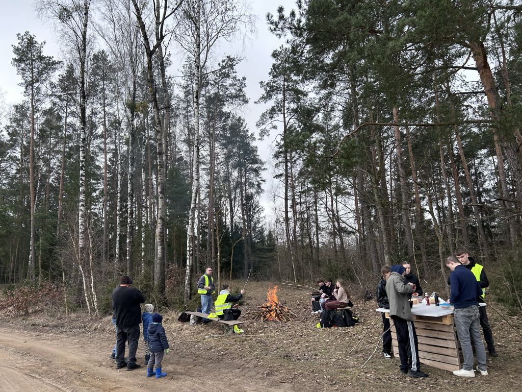 20 marca 2026 roku, z okazji pierwszego dnia wiosny uczniowie klasy ósmej uczestniczyli w rajdzie pieszym. Malownicza trasa z Rozóg w okolice Zawojek i Wilamowa, piękne przedwiośnie, głosy żurawi wprawiły uczestników w dobry nastrój. W docelowym miejscu czekał na nas leśniczy z Leśnictwa Klon, który opowiedział ciekawą historię o zapomnianym mazurskim cmentarzu i Mazurach mieszkających w Gminie Rozogi, a także zachowanych na nagrobkach napisach w gwarze mazurskiej. Jest to unikatowe w skali regionu, gdyż na zdecydowanej większości pomników z tego okresu przeważał język niemiecki. Zachwycająca historia ludzi związanych z naszą małą ojczyzną warta jest jej ochrony, dzięki inicjatywie miejscowych mieszkańców cmentarz został oczyszczony i ogrodzony, ale nadal wymaga prac konserwatorskich. Po tej krótkiej lekcji spotkaliśmy się przy ognisku przygotowanym przez rodziców jednego z uczniów. Ciepło ognia, zapach drewna, miła atmosfera, żarty, rozmowy były chwilami zapomnienia od codziennych obowiązków i świetnym relaksem. Po tej części, na łące uczniowie mieli okazję do aktywności na świeżym powietrzu, w otoczeniu lasu i dzikiej przyrody. Przywitanie wiosny w ten sposób pozostawi w pamięci wspomnienia na długie lata, tym bardziej, że jest to ostatnia wiosna ósmoklasistów, spędzona w naszej szkole.