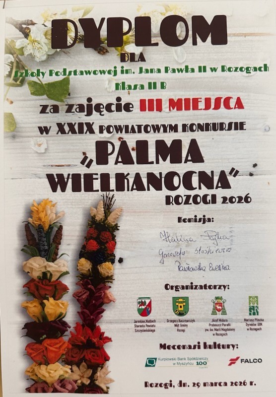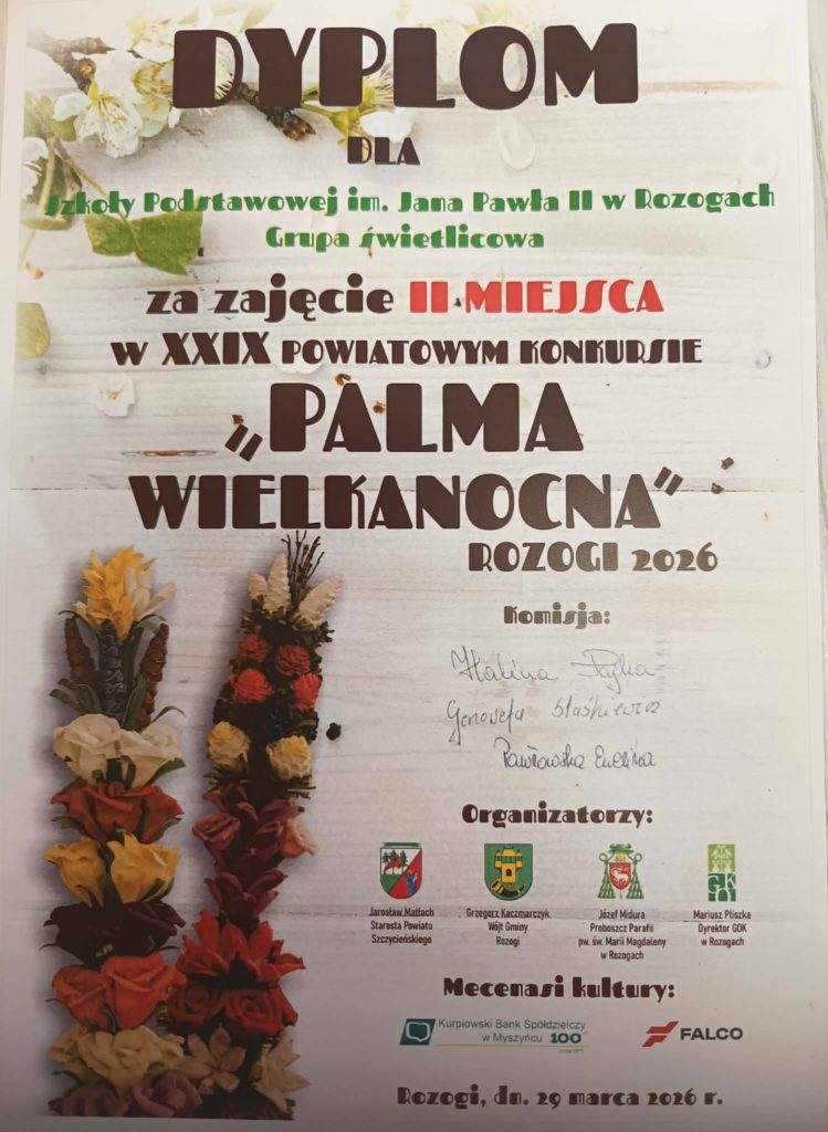 Wykonane przez uczniów palmy zachwycały nie tylko pomysłowością, ale także starannością i kunsztem wykonania. Szczególną uwagę zwracały misternie przygotowane, kolorowe kwiaty, które były efektem cierpliwej i precyzyjnej pracy. Udział w konkursie to nie tylko okazja do rywalizacji, ale przede wszystkim ważny element pielęgnowania tradycji wielkanocnych oraz przekazywania ich młodszym pokoleniom. Dzięki takim inicjatywom uczniowie rozwijają wrażliwość estetyczną, uczą się szacunku do dziedzictwa kulturowego oraz doskonalą swoje umiejętności manualne.
