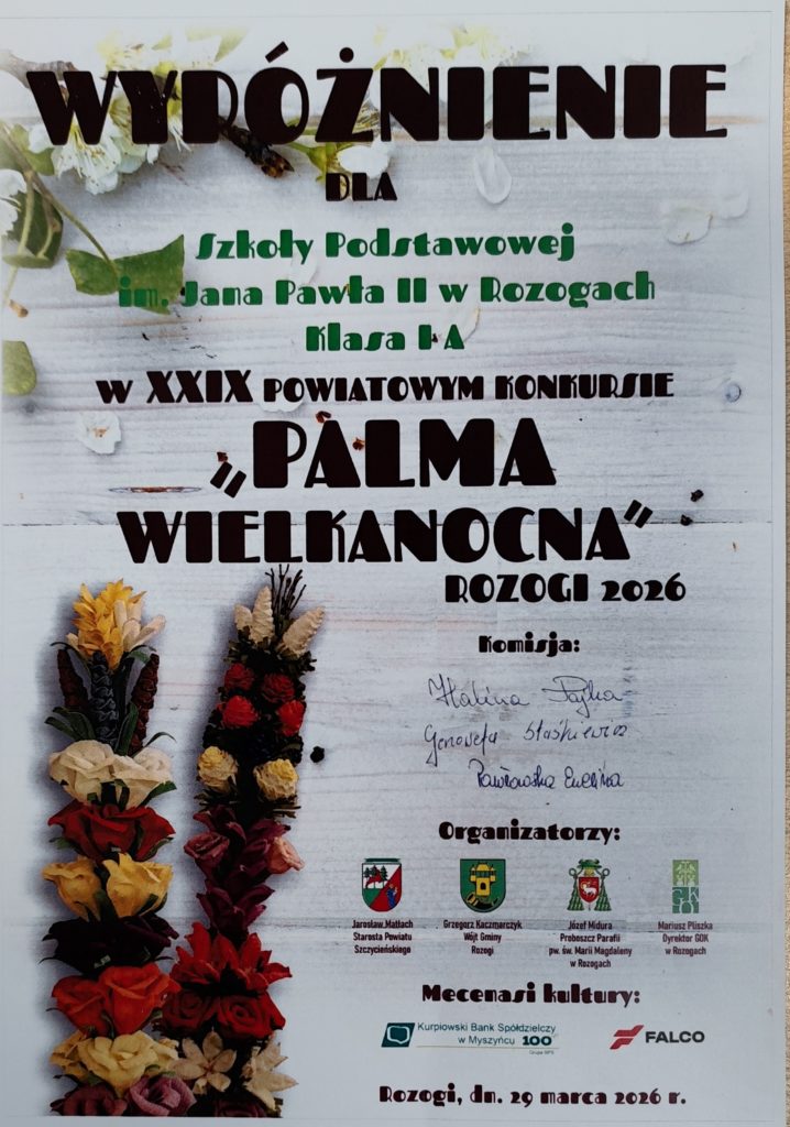 Uczniowie naszej szkoły, wspólnie z wychowawcami oraz przy wsparciu rodziców, przygotowali piękne palmy wielkanocne i wzięli udział w XXIX Powiatowym Konkursie „Palma Wielkanocna”.W tegorocznej edycji konkursu nagrodzeni zostali: